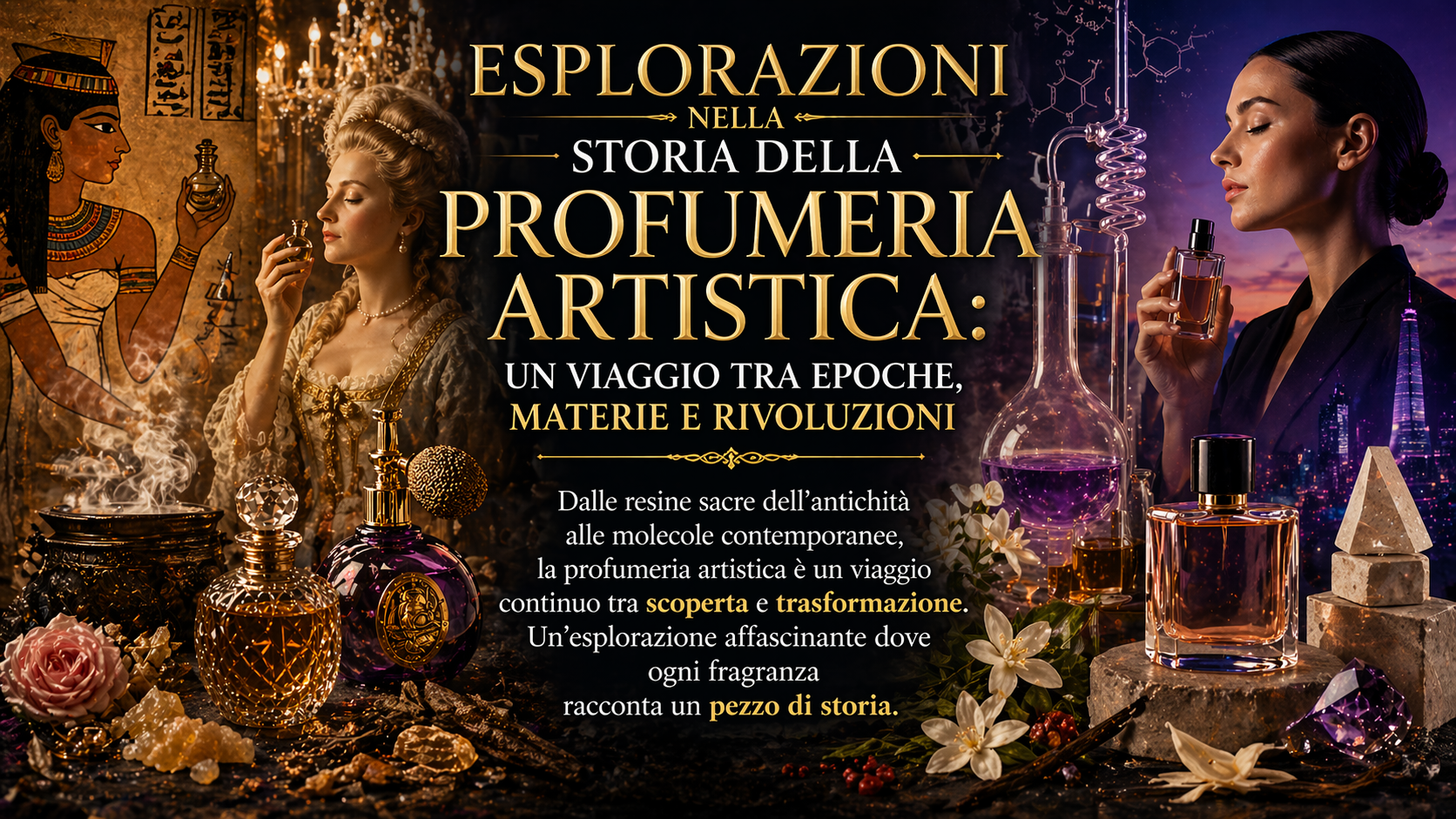 Dalle resine sacre dell’antichità alle molecole contemporanee, la profumeria artistica è un viaggio continuo tra scoperta e trasformazione. Un’esplorazione affascinante dove ogni fragranza racconta un pezzo di storia.