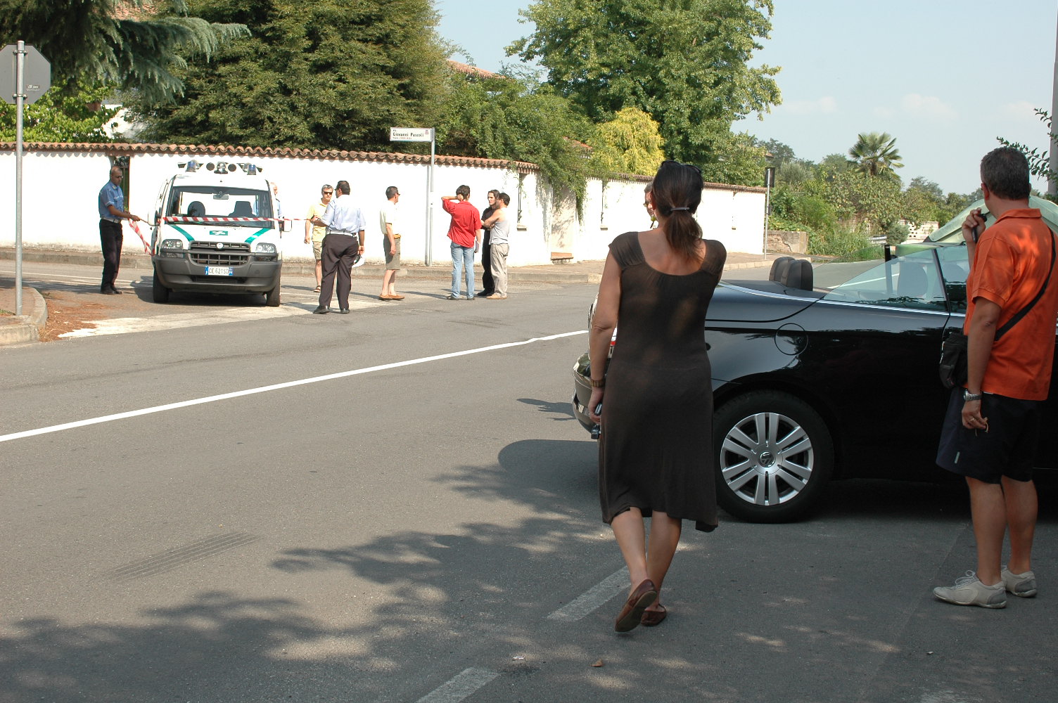 Le fotografie documentano anche l’arrivo delle cugine Cappa, confermando le loro dichiarazioni. Si vedono scendere dall’auto, entrambe presenti come hanno sempre riferito. Si nota chiaramente Paola, con le stampelle, mentre una donna di spalle — la madre delle cugine — appare in alcuni frame: anche lei giunta sul posto nei primissimi momenti. Una presenza familiare che restituisce autenticità ai racconti e ricolloca con precisione la cronologia degli arrivi.