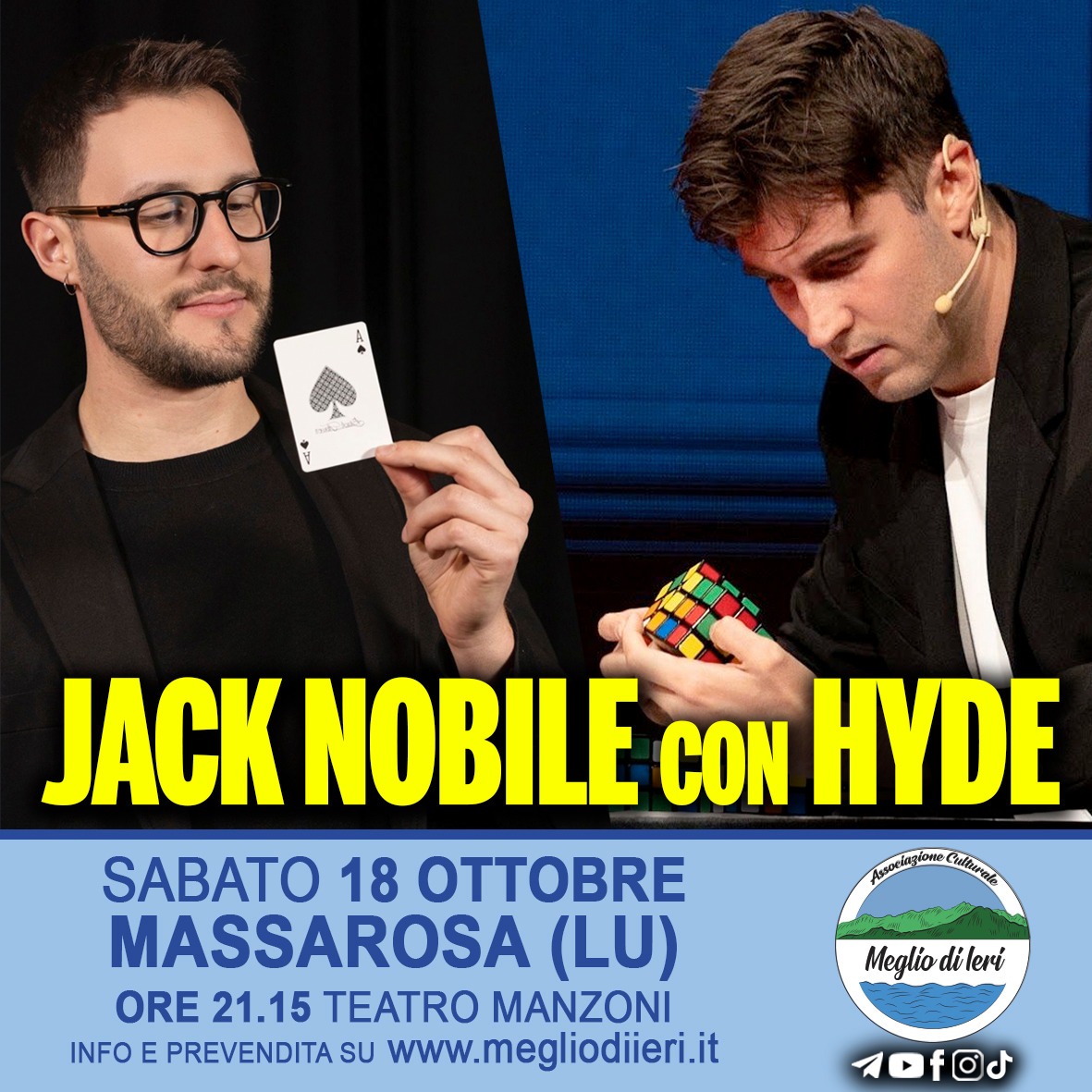 Ci sono serate che non si dimenticano, attimi sospesi che hanno il potere di riportarci bambini, quando tutto sembrava possibile e il confine tra realtà e sogno non era ancora tracciato. È questo ciò che promette il nuovo spettacolo di Jack Nobile con Hyde, in scena al Teatro Manzoni di Massarosa (Lucca): un evento che non è soltanto intrattenimento, ma un viaggio emozionante dentro l’essenza stessa della meraviglia.