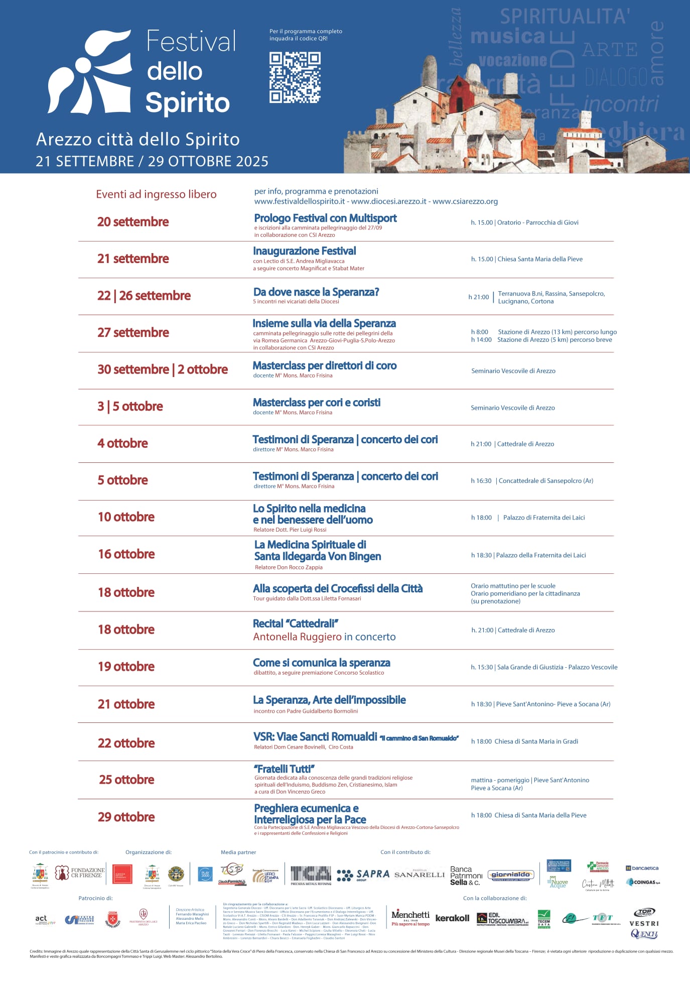 Il Festival dello Spirito, giunto alla sua seconda edizione, sembra nascere da questa domanda. Non è una rassegna come le altre: è un percorso che intreccia la Parola e l’Arte, la musica e il teatro, la riflessione e il silenzio. Quest’anno, con una novità decisiva: non solo Arezzo, ma l’intero territorio diocesano diventerà scena, con incontri e momenti di meditazione diffusi nei vicariati.