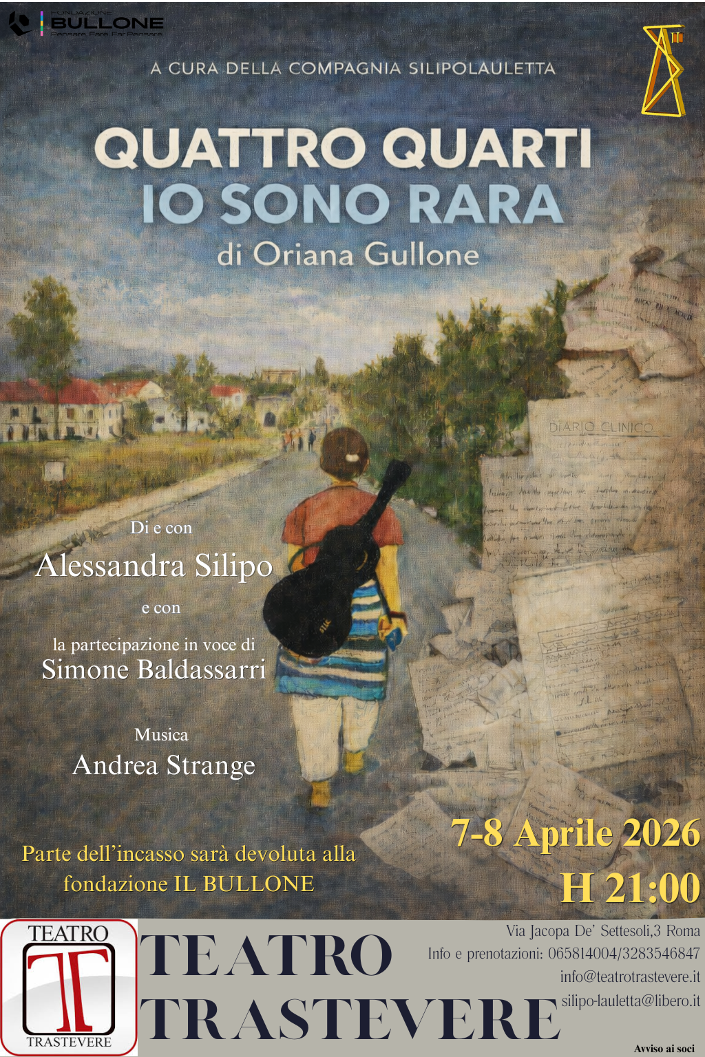 Altissima. Ogni atto d’amore richiede un’assunzione di responsabilità altissima e Quattro Quarti. Io sono rara è, prima di tutto, un atto d’amore: verso Oriana, verso chi vive con una malattia rara, verso chi lotta per essere creduto, verso chi trova la forza nell’ironia e nella verità. Attraverso fragilità emotiva, precarietà, relazioni complicate, sistemi sanitari inafferrabili, ricerca di senso si dipinge anche un ritratto generazionale portando lo spettacolo a trasformarsi in atto poetico e politico insieme, un’operazione di teatro civile, perché affronta il tema dei malati rari e della loro invisibilità sociale e perché mezzo per sostenere la ricerca. Nello specifico parte dell’incasso sarà devoluta alla Fondazione Bullone