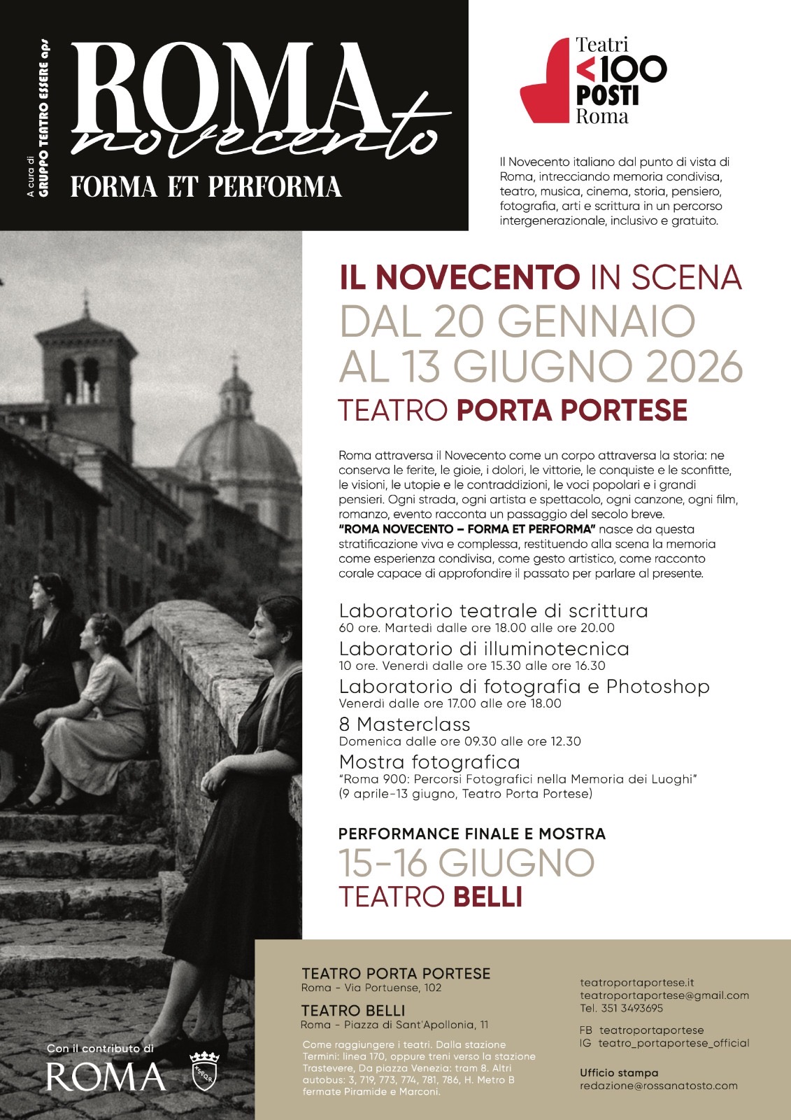 Da questa consapevolezza nasce Roma Novecento – Forma et Performa, un progetto che intreccia formazione, teatro e memoria, restituendo alla città il suo ruolo di testimone attivo di un secolo breve e lacerante.